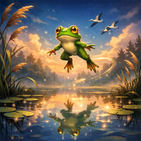 У старому ставку жила собі маленька Жабка. Була вона зелена, як молодий листок, і мала великі золотисті очі, в яких завжди відбивалося небо.