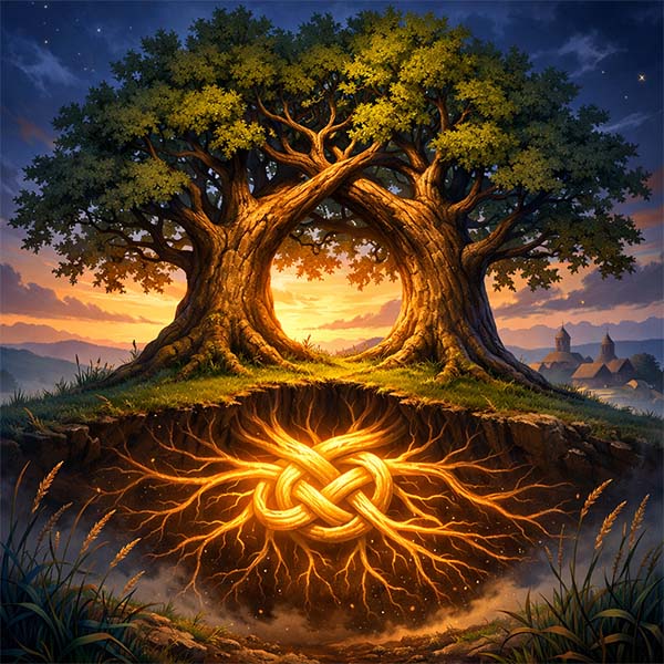 А під землею, там, де ніхто не бачить, діялося диво. Коріння Гнатового дуба сплелося з корінням Трохимового. Вже не розібрати було, де чиє. Стали вони єдиним цілим, міцним вузлом, який не розрубати жодною сокирою, не розірвати жодною силою.
