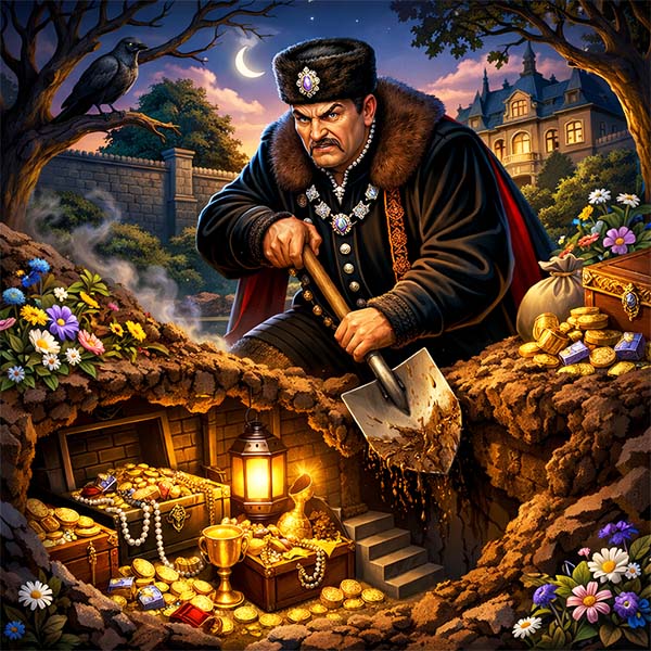 – Збудую собі палац під землею! – шепотів він, кидаючи землю набік. – Там буде тихо, темно і безпечно. Тільки я і моє золото.