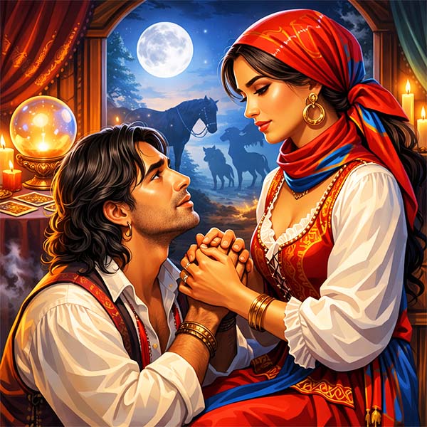 Впізнав циган свою "долю". Впав перед дружиною на коліна, заридав і в усьому зізнався. Пробачила вона його, бо любов сильніша за старі образи.